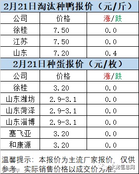 一、2月20日晚至2月21日 白羽肉鸭报价
