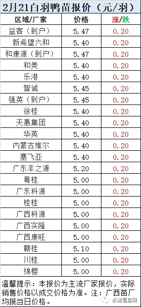 一、2月21日白羽鸭苗报价