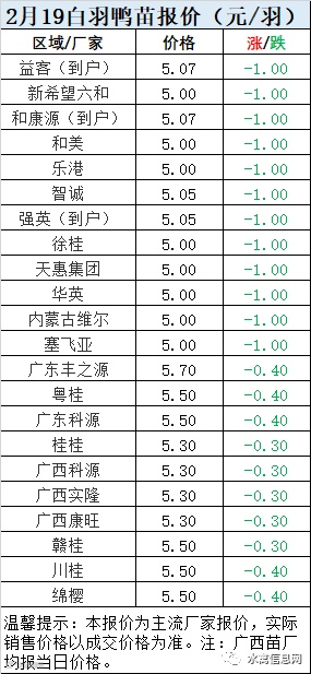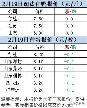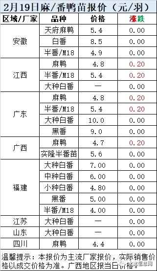 一、2月18日晚至2月19日 白羽肉鸭报价
