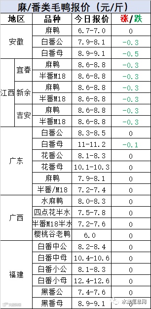 明日麻鸭苗继续上涨0.2元/羽,半番鸭苗上涨0.2元/羽。