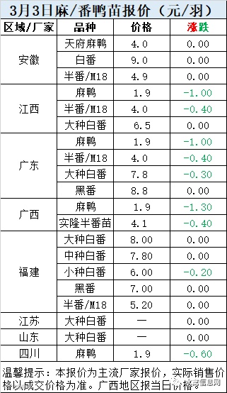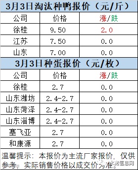 一、3月2日晚至3月3日 白羽肉鸭报价