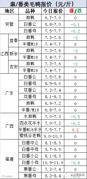麻、番鸭市场较小,销售、生产相对集中,极易受外来资金及白鸭走势冲击。