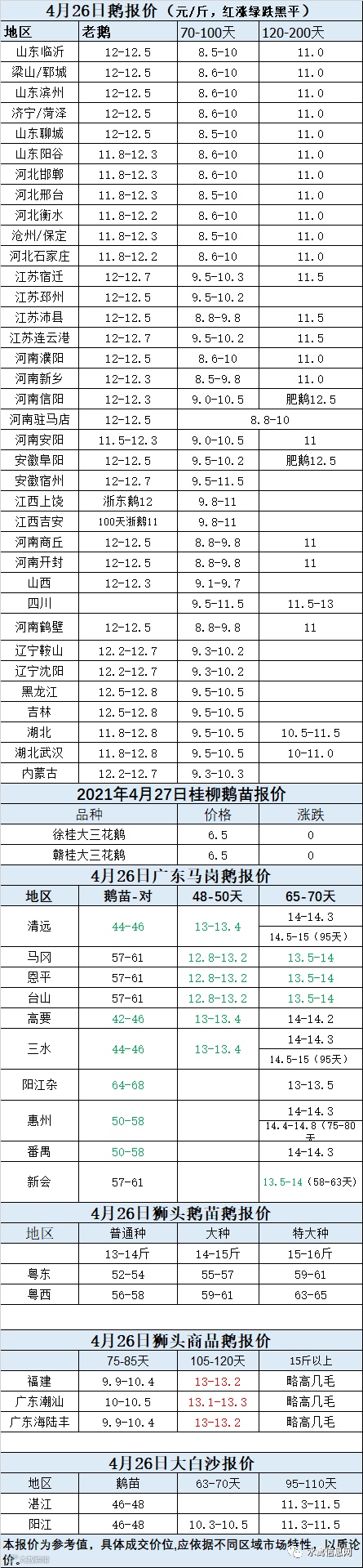 2021年4月26日商品鹅蛋价格(元/斤)