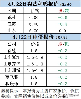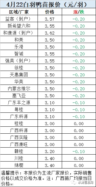 一、4月21日晚至4月22日 白羽肉鸭报价