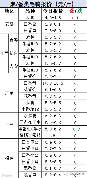 明日麻鸭苗报价上涨0.2元/羽。半番鸭苗报价平稳。