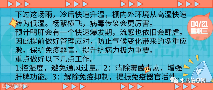 2:南方活禽区域,五一鸭预备上市。广东机构压价,市场出价暂时较乱,整体跌宕下调。广西毛鸭加速下滑。