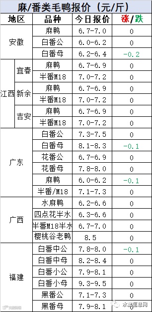 明日半番鸭苗报价稳定,连续下滑后半番鸭苗进入冷静区间,持续弱势调整。