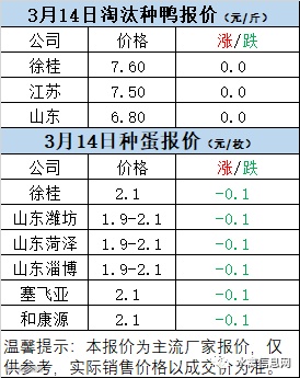 一、3月14日白羽鸭苗报价