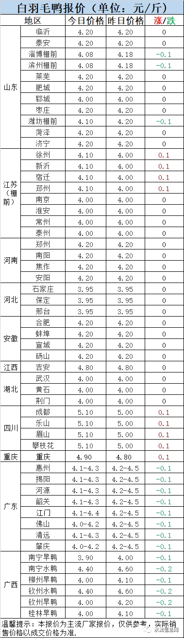 1:今晚北方分割鸭区域报价:山东棚前高位下滑,平抑虚火;苏北追涨,市场整体持稳,波动调整。连续上涨后报价基本进入高位区间,受产品售价制约继续上涨阻力加大,预计近期毛鸭价格波动调整为主。