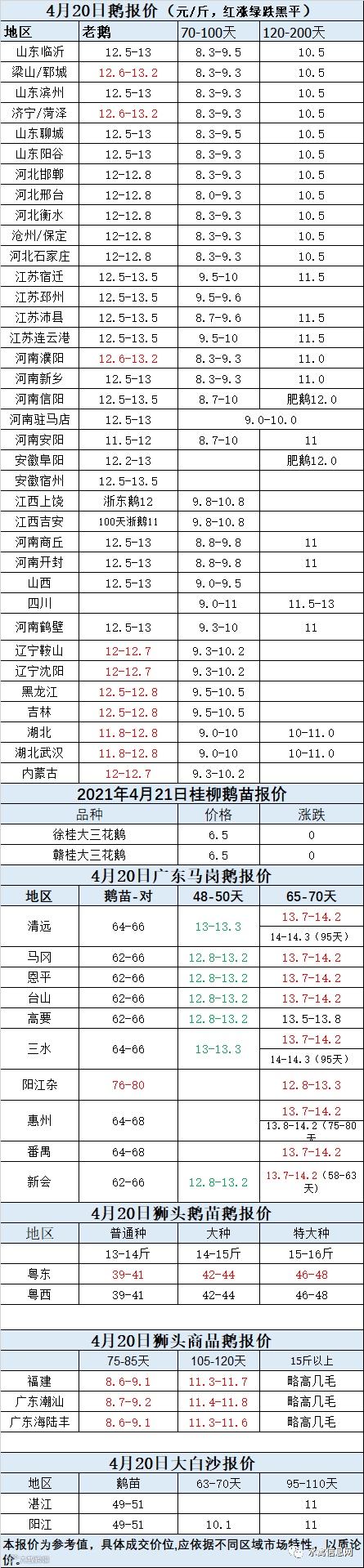2021年4月20日商品鹅蛋价格(元/斤)