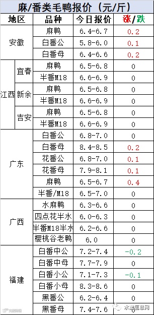 明日:麻鸭报价上涨0.1元/羽、半番苗报价上涨0.1元/羽。