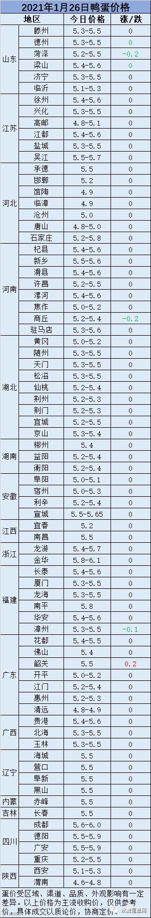 【鸭蛋价格】2021年1月26日鸭蛋报价:趋势呈弱,局部下跌。 益牧堂水禽信息