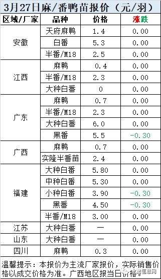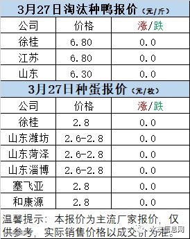 一、3月26日晚至3月27日 白羽肉鸭报价