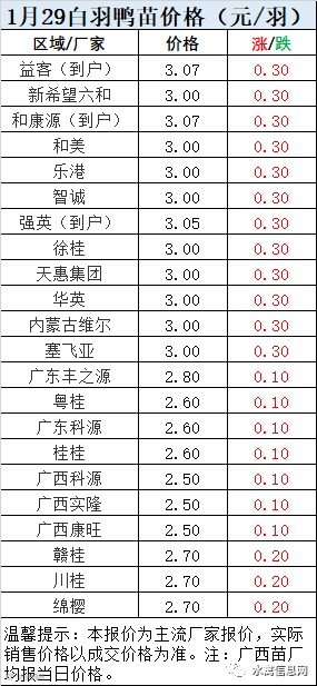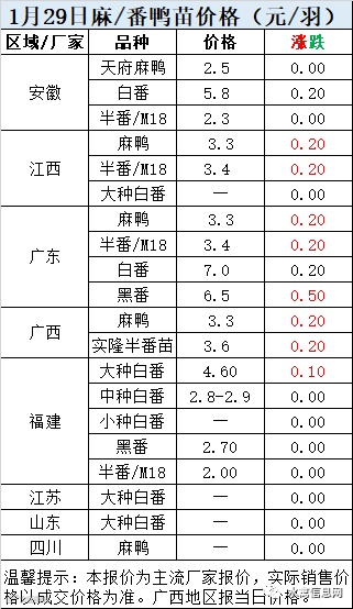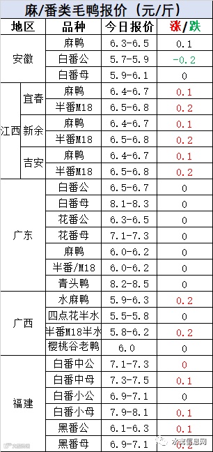 明日:麻鸭报价上涨0.3元/羽、半番苗报价上涨0.3元/羽。