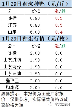一、1月28日晚至1月29日 白羽肉鸭报价