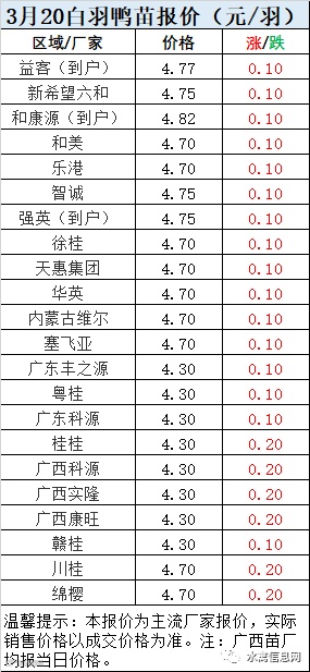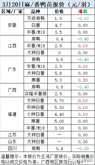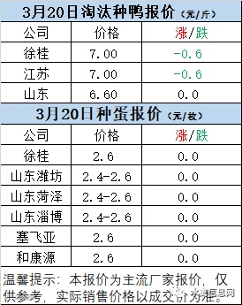 一、3月19日晚至3月20日 白羽肉鸭报价