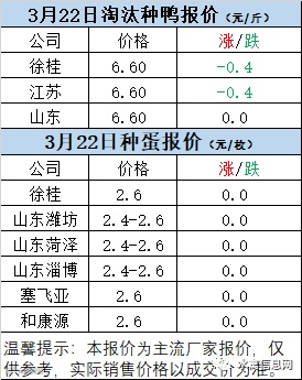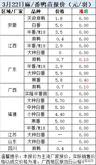 一、3月22日白羽鸭苗报价