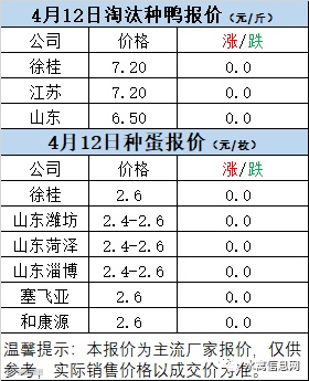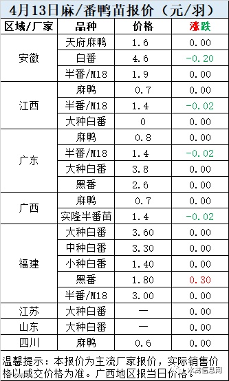 一、4月12日晚至4月13日 白羽肉鸭报价