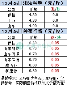 种蛋行情:明日种蛋报价低位上调0.05元/枚,年后鸭上孵期已到,但受冻品销售影响行业信心,计划排定很不理想。蛋价弱势也从侧面反映对行情的悲观,长期看蛋价仍有小幅操作空间。