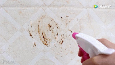 厨房的墙壁上沾染了一块大大的污渍,没关系,用它喷一喷,污渍自动往下掉,去污效果特别好。