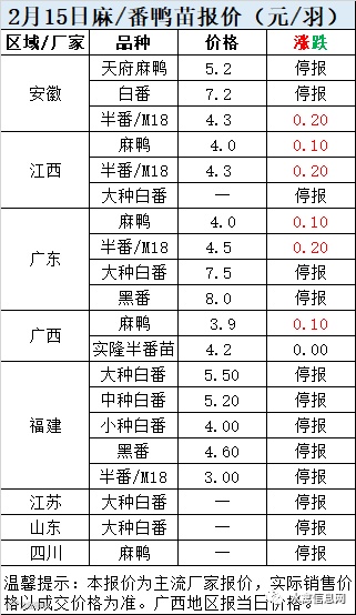 一、2月15日白羽鸭苗报价