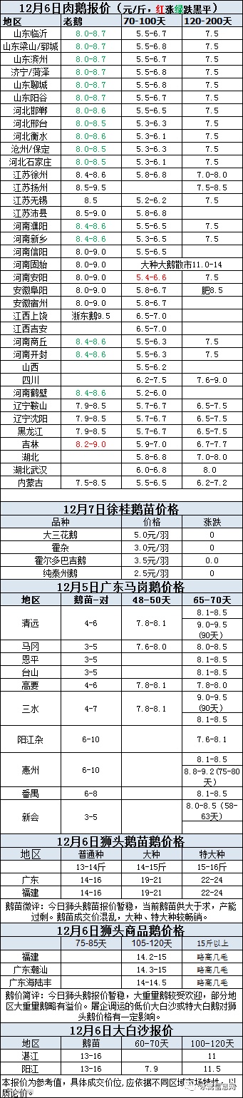 2020年12月06日鹅种蛋价格(元/枚)