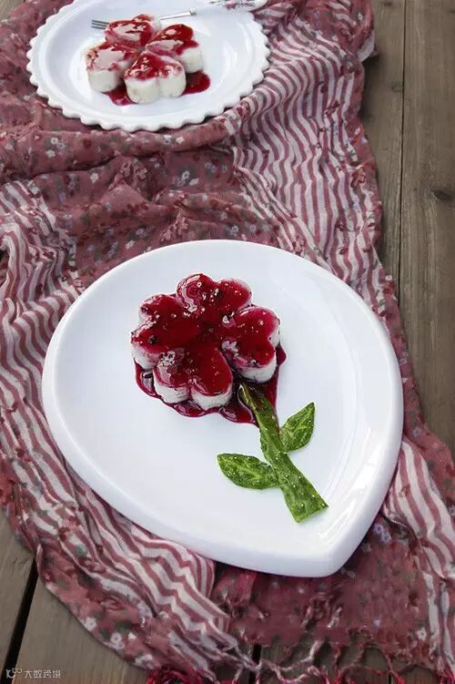 6.用心型工具将山药泥压成心型,摆成花朵状。