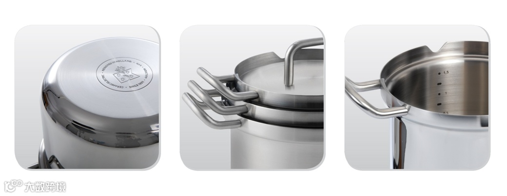 这一系列的锅具内部精确地标有刻度线,因而就能准确地测得水量,而不必另外使用量水杯。