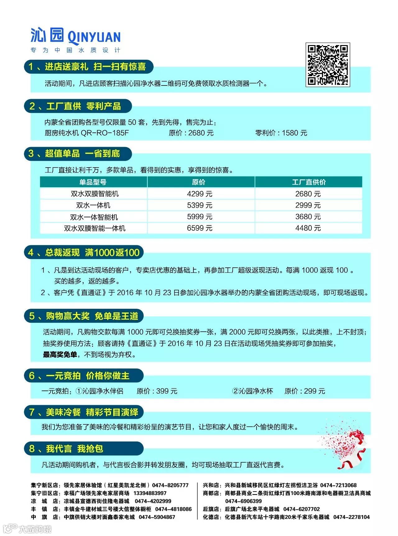 本次沁园净水器活动可是厂家直接策划,16年以来活动力度最大的一次,哇~价格真的很心动。