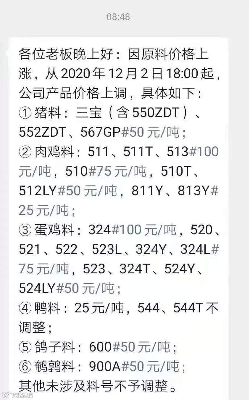 多家企业宣布饲料涨价,12月饲料涨价潮要来袭?