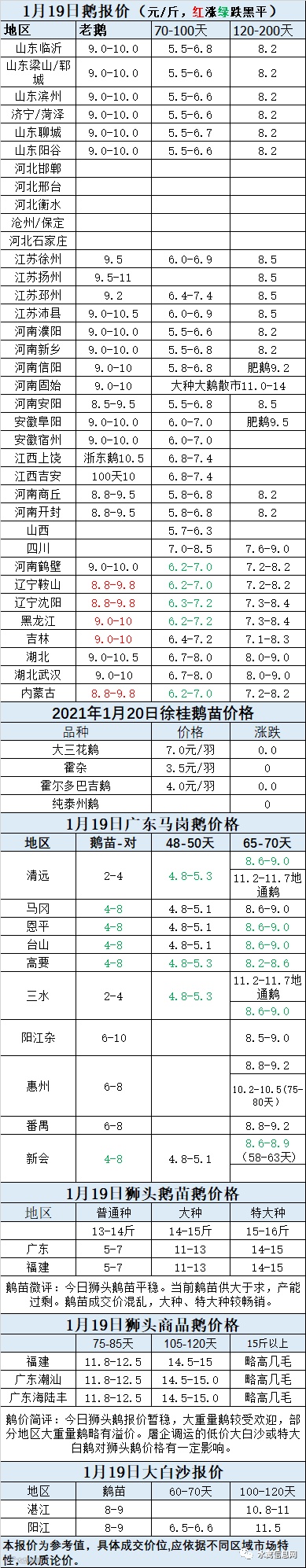 2021年1月19日商品鹅蛋价格(元/斤)