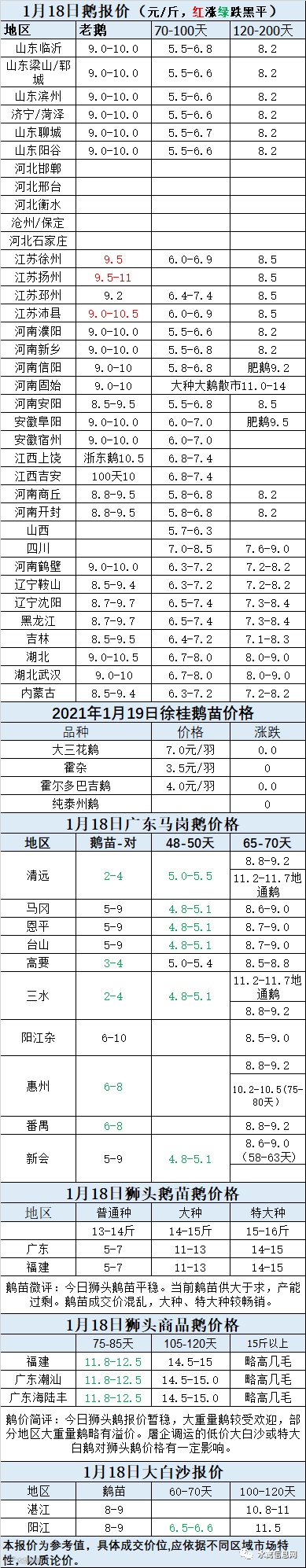 2021年1月18日商品鹅蛋价格(元/斤)