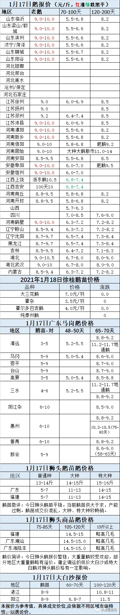 2021年1月17日商品鹅蛋价格(元/斤)