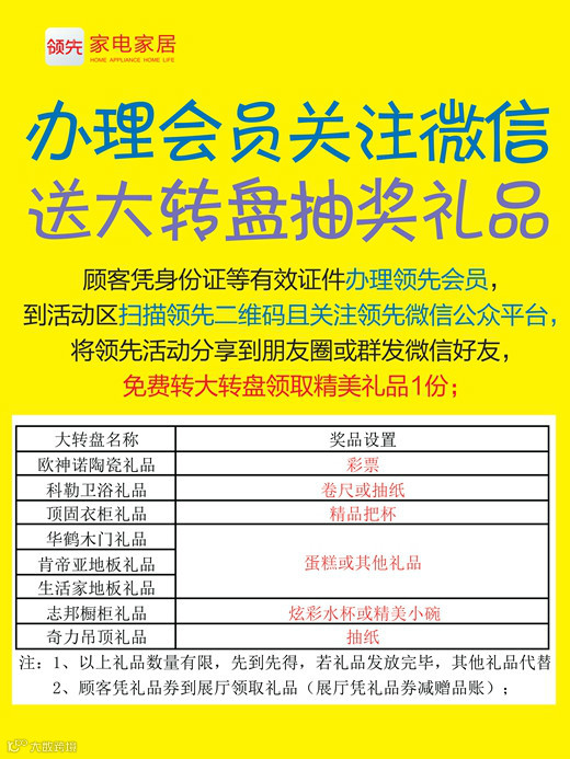 4.17-4.19日,顾客凭身份证等有效证件办理领先会员,到商场前门