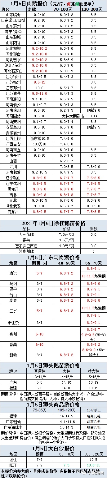 2021年1月05日鹅种蛋价格(元/枚)