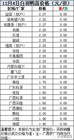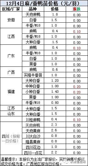一、12月3日晚至12月4日 白羽肉鸭报价