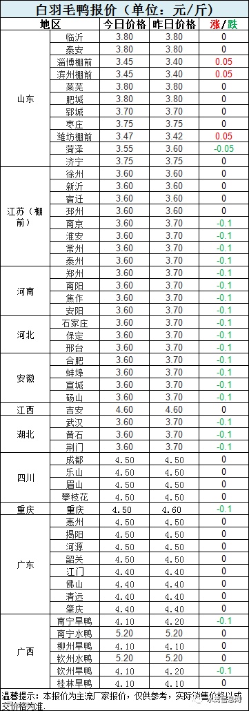 广东地区近期供需两端博弈剧烈,整体大体重鸭走货较好,今晚报价暂稳。广西地区报价整体稳定向好,但旱鸭仍有局部下滑。
