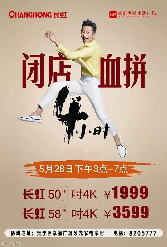 5月28日下午3点-7点领先电器闭店销售,长虹、美菱强强联合,低价血拼4小时。给广大消费者带去实实在在的福利与优惠,多款产品优惠来袭。