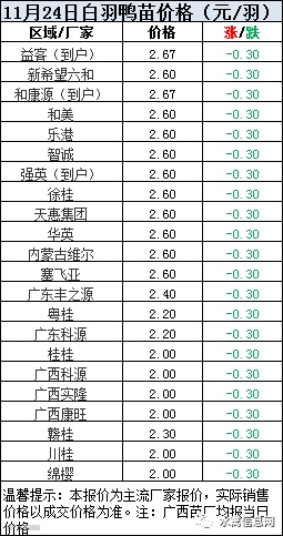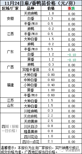 一、2020年11月24日白羽鸭苗报价;
