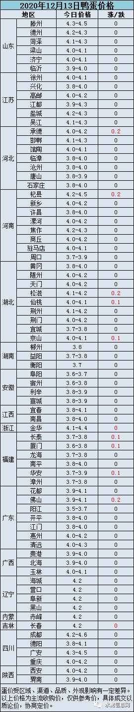 2020年12月13日淘汰蛋鸭价格参考值:活禽6.5-7.0元/斤、屠宰5.0-6.0元/斤。受肉鸭活禽价格下跌影响叠加淘鸭增多种鸭淘汰乱市,淘汰蛋鸭持续弱势震荡,走货较慢。