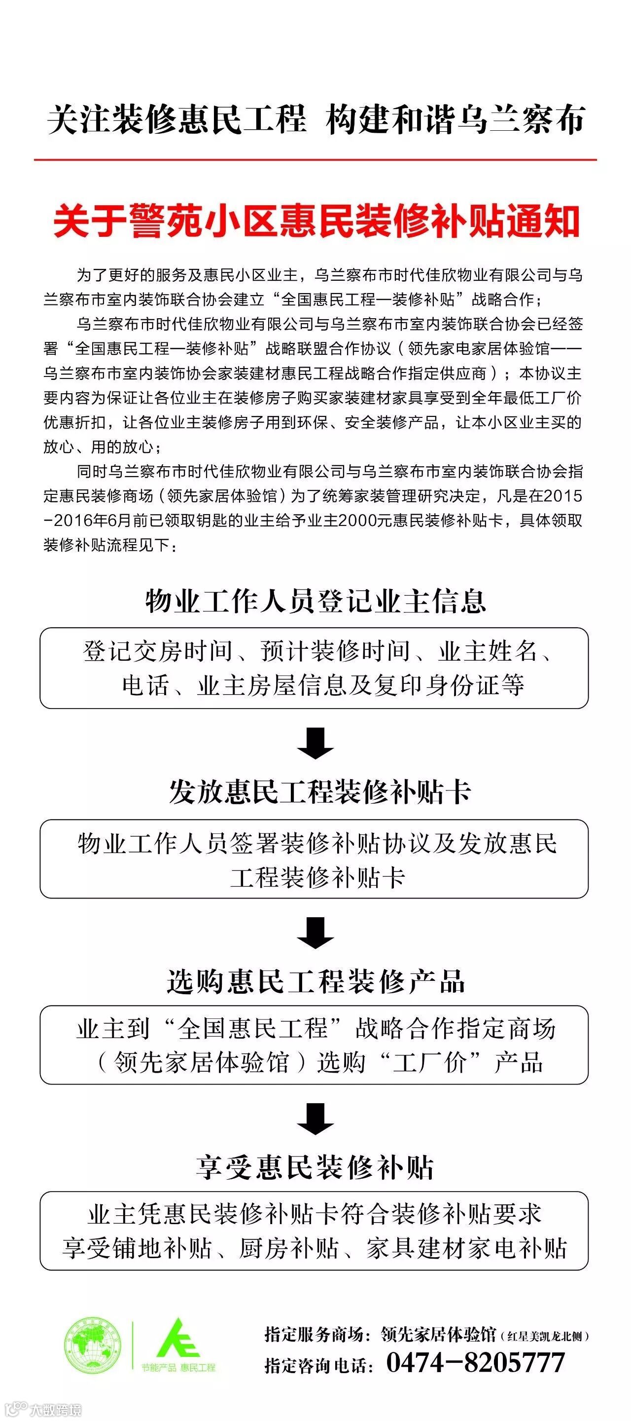【通知】关于集宁警苑小区惠民装修补贴通知,大家互相通知领取