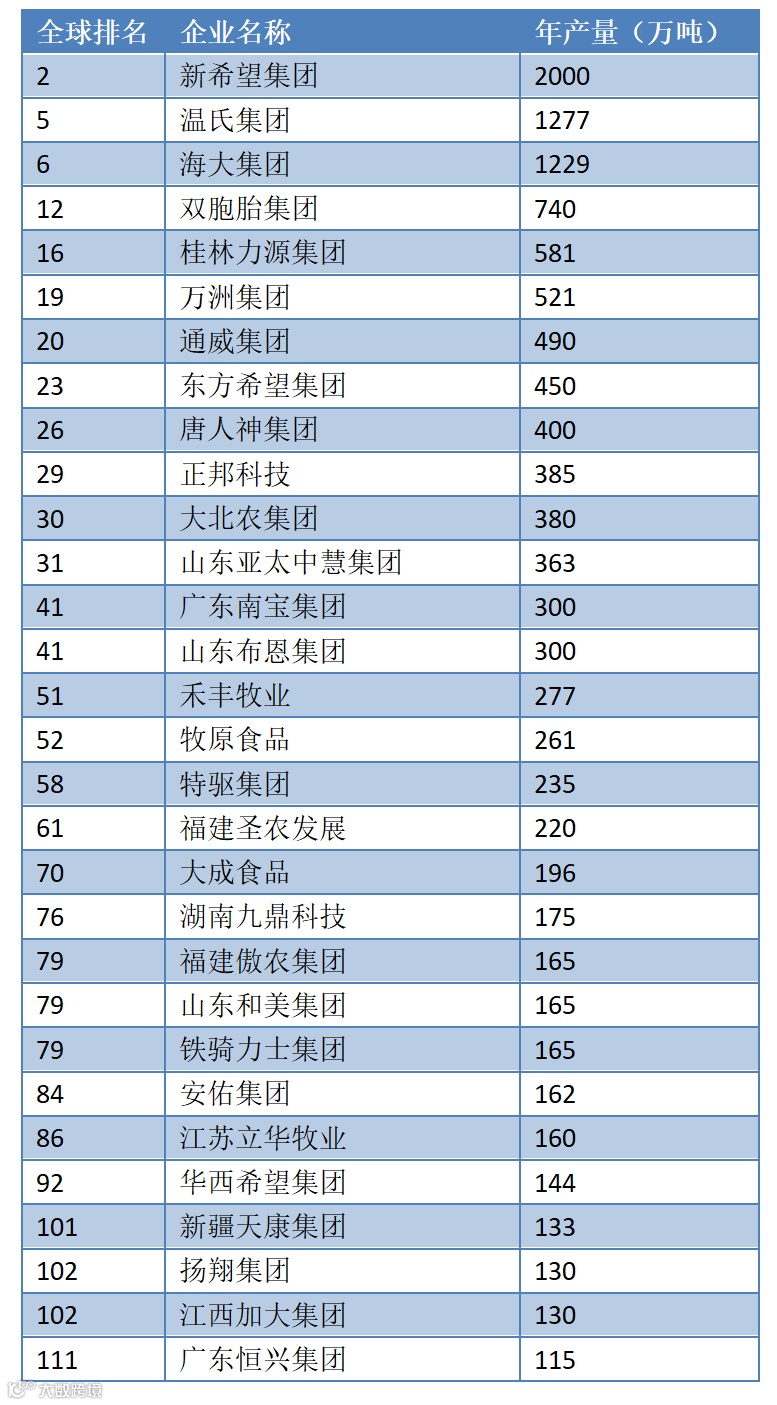 前129家饲料企业生产了近4.38亿吨配合饲料,前三甲分别是来自泰国的正大集团、中国的新希望集团和