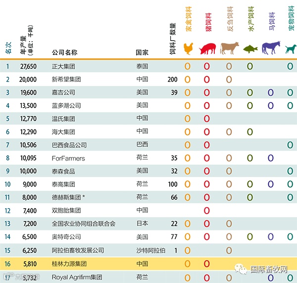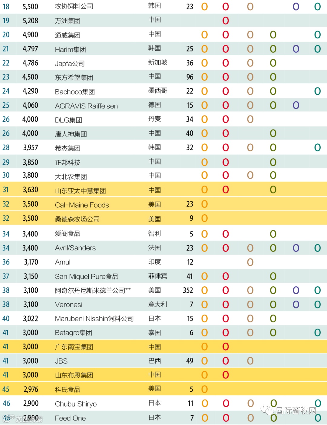 据WATT国际传媒的统计数据显示,2019年上榜的全球复合动物饲料生产公司的饲料产量均达到或超过100万吨。