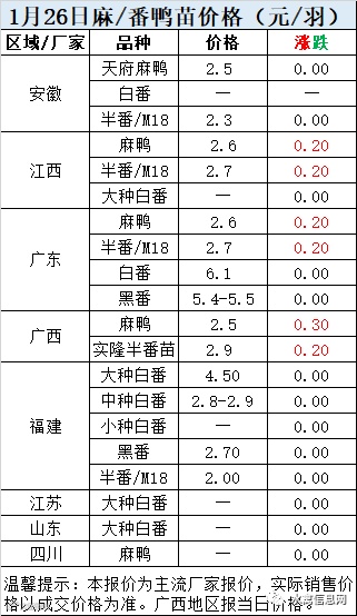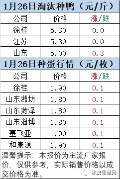 一、1月25日晚至1月26日 白羽肉鸭报价