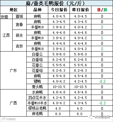 今晚麻鸭报价稳中趋弱,半番鸭报价整体下滑。