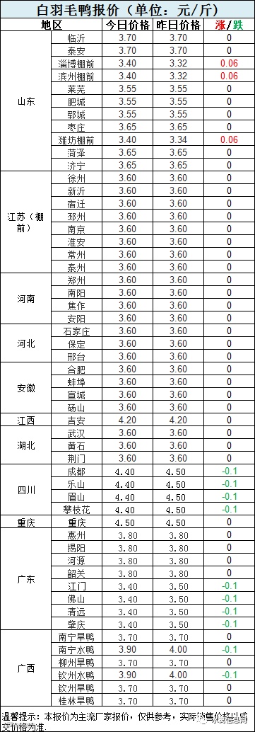 1:今晚北方分割鸭区域报稳为主,山东棚前上涨。北方市场以合同鸭回收为主,毛鸭价格受冷藏成本与冻品价格影响,涨跌幅度有限,基本小幅波动中。