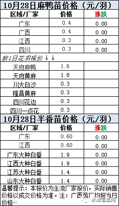 二、10月28日 麻鸭苗、半番鸭苗报价;