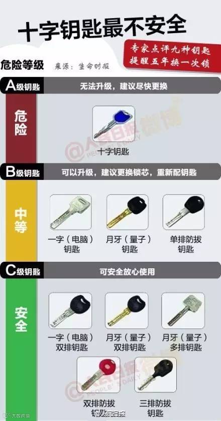 温馨提醒:家用门锁3—5年就需要更换。如果没有条件换锁的,睡前记得把门反锁好,并插上钥匙扭半圈,做到这样就比较保险啦。