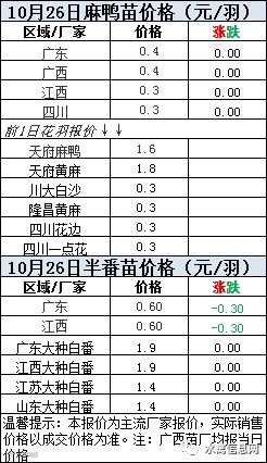 二、10月26日 麻鸭苗、半番鸭苗报价;