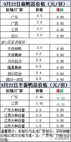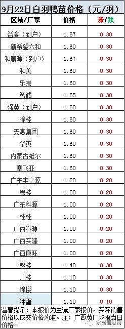 2020年9月22日鸭苗报价;